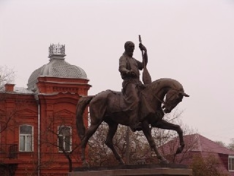 К 450-летнему юбилею (в 2008 году) Астрахани Правительство Республики Казахстан подарило городу памятник знаменитому великому казахскому композитору ХIХ века, жившему на Астраханской земле, Курмангазы Сагырбаеву. Автор скульптуры - Едиге Рахмадиев.
